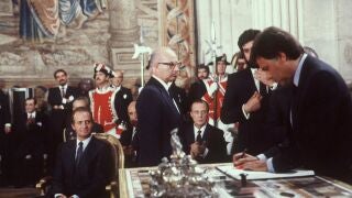 Aquel día se daba un paso fundamental para completar la unidad del viejo continente y también para "superar el aislamiento secular de España", como manifestó el presidente del Gobierno, Felipe González, al estampar su firma en el documento.