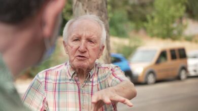 Alberto Chicote charla con un grupo de usuarios de residencias de ancianos y éstos le cuentan las condiciones de la comida que les ofrecen en el centro.