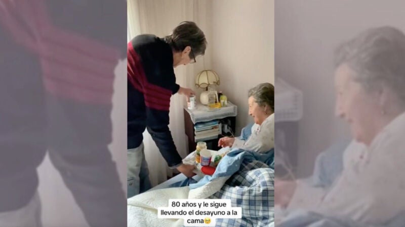 Un joven graba el gesto de amor de sus abuelos: "80 años y le sigue llevando el desayuno"
