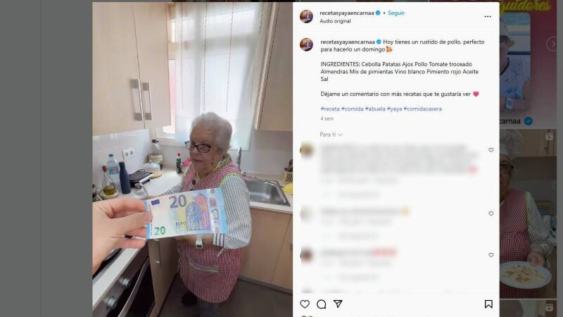 Se llama Encarna Bejar, aunque en redes es más conocida como @recetasyayaencarnaa, su nieto es el que le anima realizar diferentes recetas tradicionales y fáciles de hacer que siguen ya más de 100.000 personas.